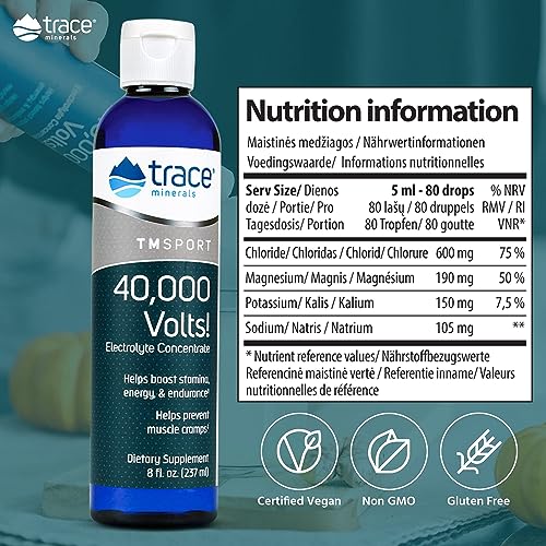 Trace Minerals 40,000 Volts Liquid Electrolyte Concentrate Drops can be used to prevent and relieve leg and muscle cramps, Charlie horses, and spasms for men, women, and athletes alike. This product is designed to keep the body hydrated with steady energy throughout the day. With its pure ingredients you can trust to perform from America s 1 Trace Mineral Supplement Brand.